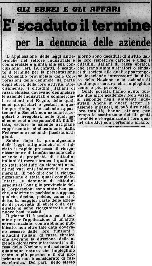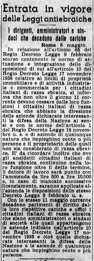 8 maggio Prosegue l'applicazione delle leggi razziali |